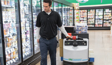 Three contact points for forward/reverse rotary travel direction and speed control improve maneuverability and provide precise handling for the electric pallet truck.