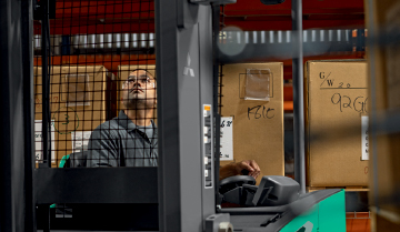 • Excellent visibility through the mast, through the overhead guard and to the load helps the operator to effectively navigate through their surroundings.