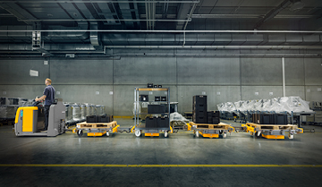 Automatic parking brake with roll-back protection ensures when the truck comes to a stop, the tow tractor and trailer are automatically secured.