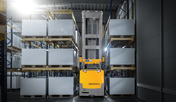 Thanks to the optional integration of an on-board battery charger, bus bar and current collector, this AGV turret truck is optimally prepared for 24/7 use. The field-tested wire guidance in combination with RFID transponders ensures precise positioning at the storage location as well as automatic aisle changes. With the option of automation in stages (manual, semi-autonomous and full-autonomous operation), you can benefit from maximum availability, efficiency and performance of your warehouse processes.