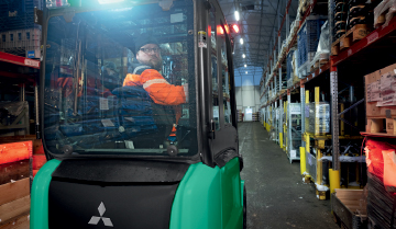 - Forward and reverse LED lights are mast mounted for increased visibility.