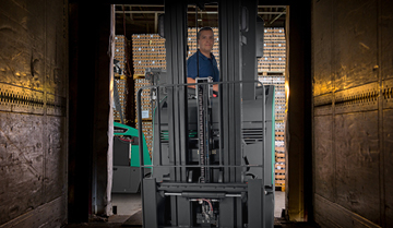 Longer Run Times – Regenerative braking is activated when the stand-up forklift decelerates, changes directions or when the service brakes are applied and helps return energy to the battery, extending run times and service brake life.