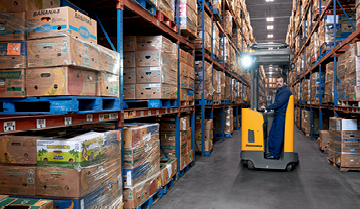 Steer with control – Positioning the reach truck in an aisle is simplified with the ETR’s electronic power steering. This drive-by-wire system is extremely smooth and quiet and requires minimal effort to operate.